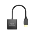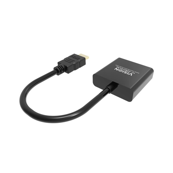 The Vision HDMI to VGA Converter is designed to effortlessly connect your HDMI-enabled device to a VGA display, ensuring smooth video transmission and reliable performance. Whether you’re setting up a workstation, upgrading your monitor, or delivering presentations, this adapter provides a convenient solution for bridging digital and analogue display technologies.