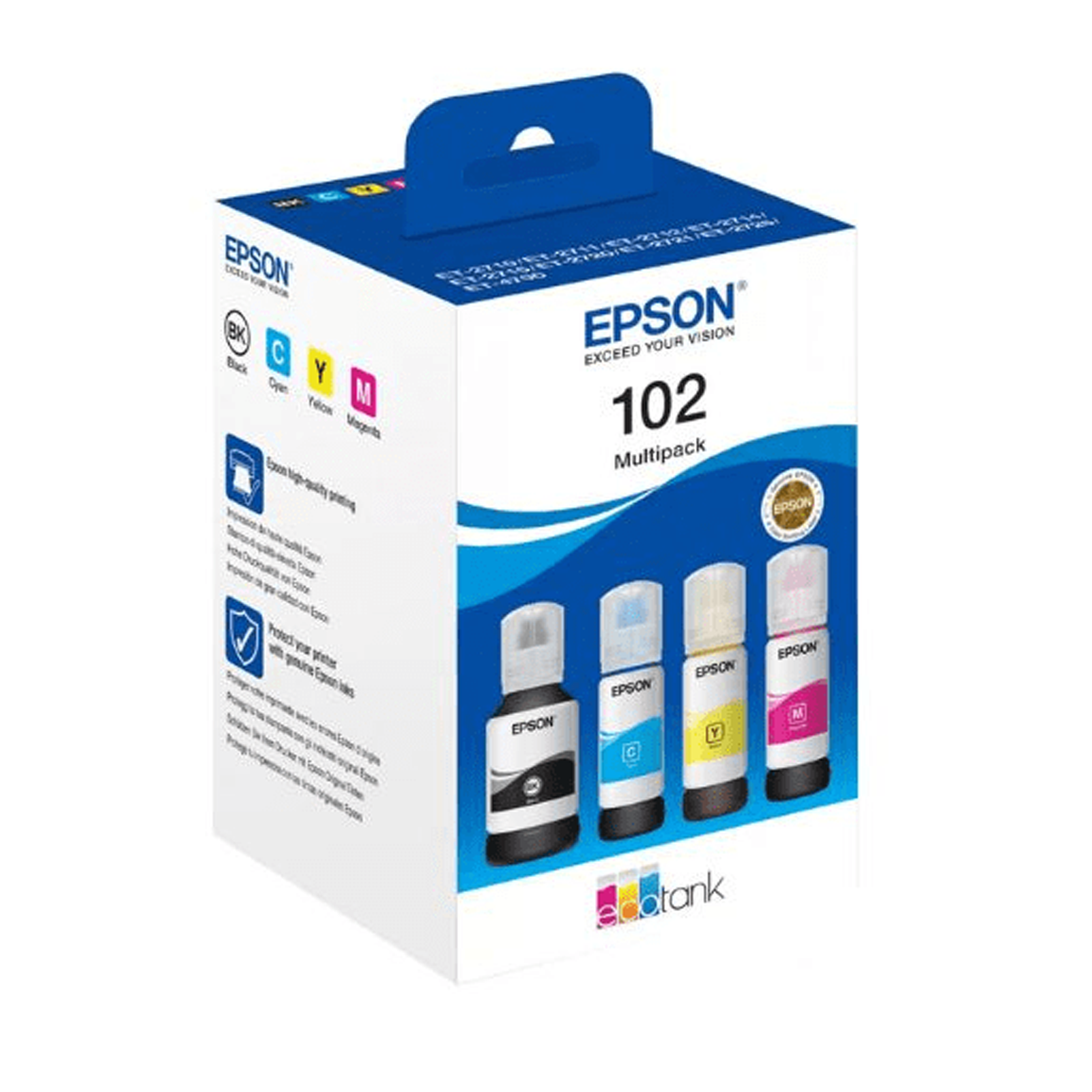 Whether you’re printing school homework, travel documents or everyday paperwork, the Epson 102 Original Ink Bottle 4 Pack (Black, Cyan, Magenta, Yellow) delivers a reliable, hassle‑free printing experience.